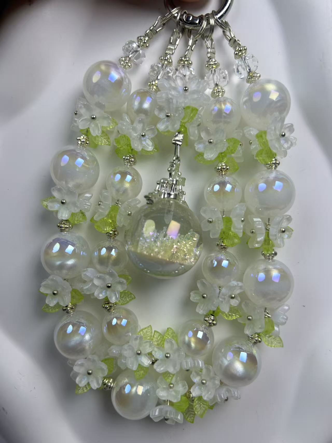 This mobile phone chain adopts a style combining fresh forest elements and dreamy glass. The overall color scheme is mainly white and green, exuding a fairy-like atmosphere✨